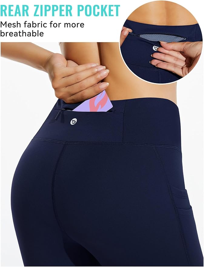 baleaf Women's Fleece Lined Leggings Water Resistant Thermal Winter Warm Tights High Waisted with Pockets Running Gear