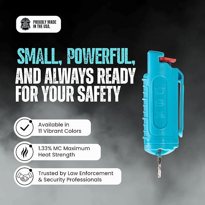 - Proudly made in the USA - 1.33% MC police pepper spray maximum heat strength OC that is used and trusted by several law enforcement agencies and security personnel - Our formula is HPLC lab tested for a consistent self defense pepper spray performance. Provides strong 10-12ft range with multiple blasts.
