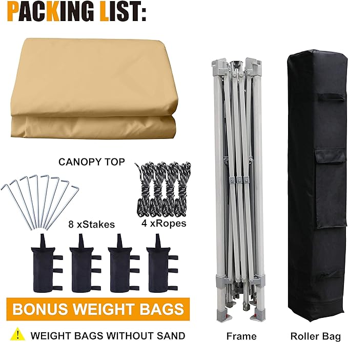 - 【PARTS INCLUDED】Fully assembled powder-coated steel frame,CPAI-84 Flame retardant silver coated canopy top,600D heavy stock wear resistant roller bag,4Xsand bags,8Xstakes and 4X ropes. If you have anything about our products, We are ready to help you.