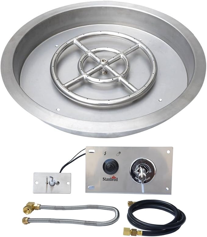 Stanbroil 25 Inch Drop-in Round Natural Gas Fire Pit Kit with Spark Ignition,304 Stainless Steel Fire Pit Burner for Outdoor Indoor- Natural Gas Version