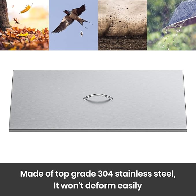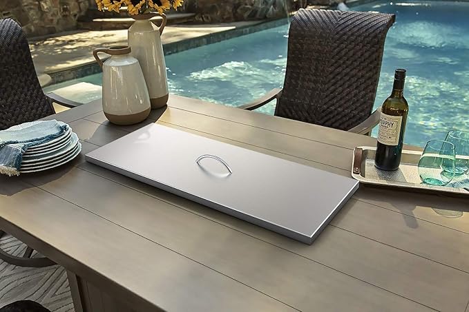 - Dimensions: Measures 33"L x13"W x 1"H, designed to cover 30" x 10" Rect fire pit drop in pan.
