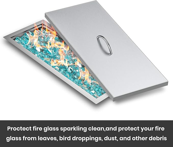 - Dimensions: Measures 27" L x 11" W x1" H, designed to cover designed to cover 24" x 8" Rect fire pit drop in pan.