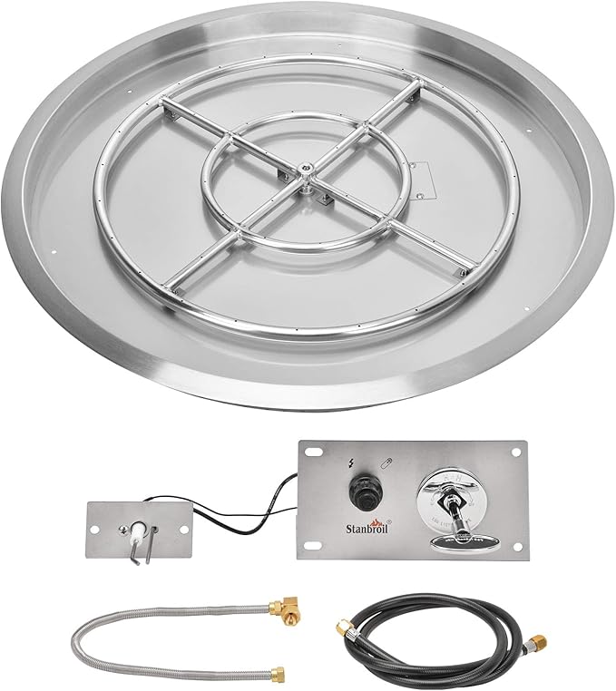 Stanbroil 31 Inch Drop-in Round Natural Gas Fire Pit Kit with Spark Ignition Kit, 304 Stainless Steel Gas Firepit Burner Insert for Outdoor Indoor- Natural Gas Version