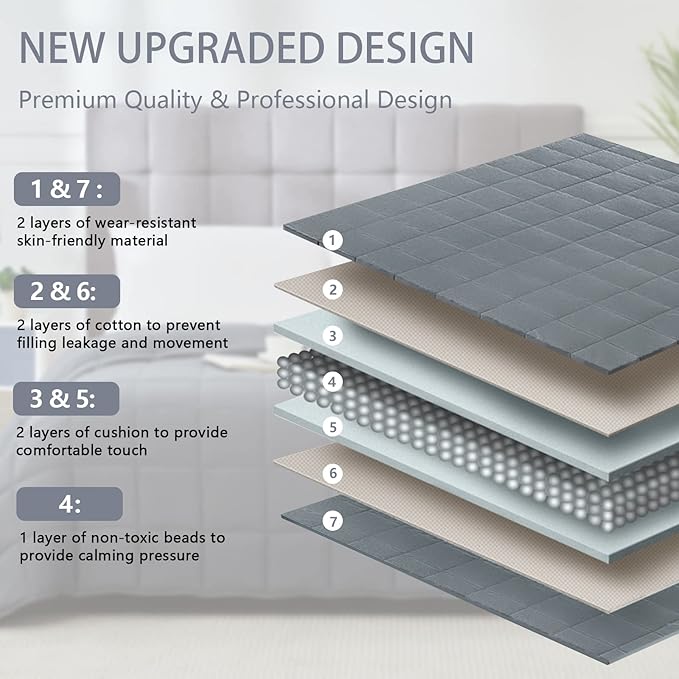 - UNIQUE CRAFTSMANSHIP: When sewing our weighted blankets, we use double-wrapped threads to make the sewing around the heavy blanket firmer. Needle pitch 1"/9 stitches (including quilting stitch length, to ensure that the glass beads inside the heavy blanket do not run away move). One loop on each of the four corners and one loop on each of the four sides (1cm wide*6cm long, fixed by turning back stitch), a total of 8 loops, easy to install the duvet cover.