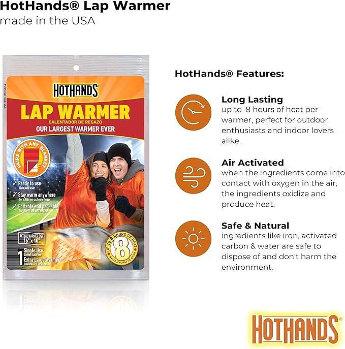 HotHands Lap Warmer, Largest Warmer 16" X 10" - Up to 8 Hours of Long Lasting Heat - 1 Lap Warmer,Tan