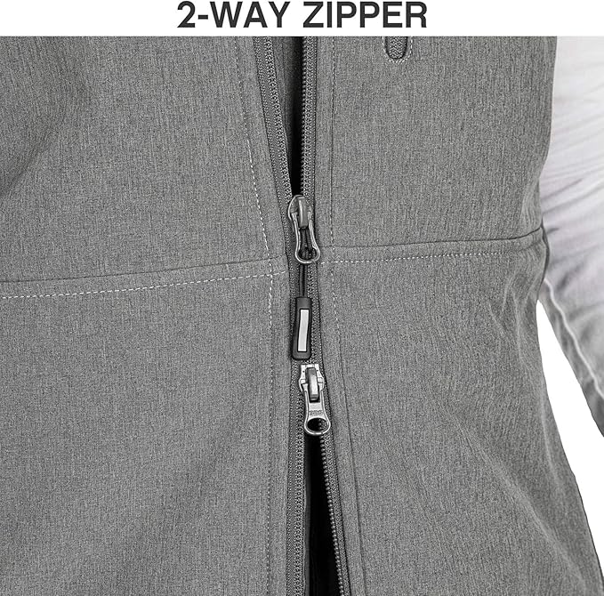 • Softshell Vest for Work & Sports (Abrasion-resistant)----The soft shell fabric is smooth with a little stretch, wipes off easily and washes well. It repels stain, resists abrasion & scratches, great for work and outdoor activities.