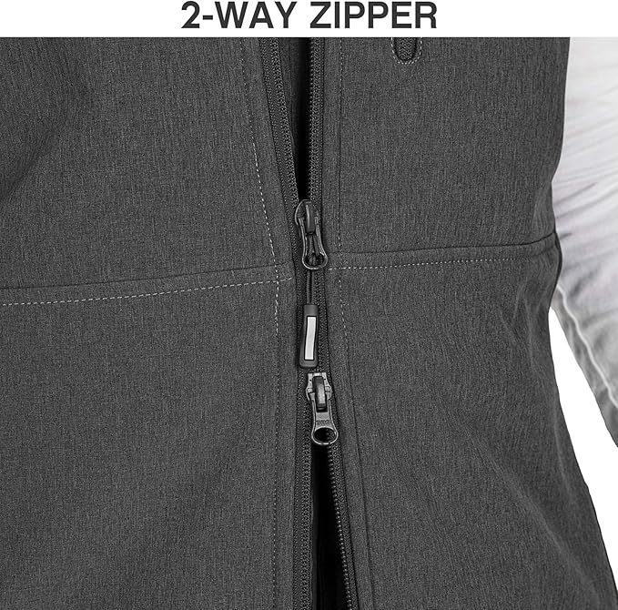 - Softshell Vest for Work & Sports (Abrasion-resistant)----The soft shell fabric is smooth with a little stretch, wipes off easily and washes well. It repels stain, resists abrasion & scratches, great for work and outdoor activities.