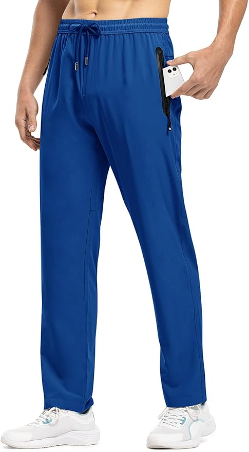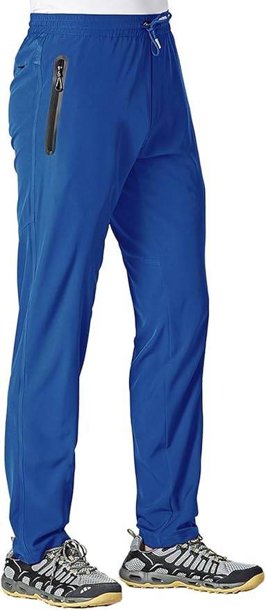 TBMPOY Men's Lightweight Hiking Travel Pants Breathable Athletic Fishing Active Joggers Zipper Pockets