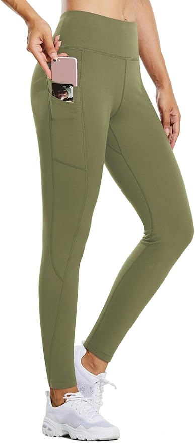 baleaf Women's Fleece Lined Leggings Water Resistant Thermal Winter Warm Tights High Waisted with Pockets Running Gear