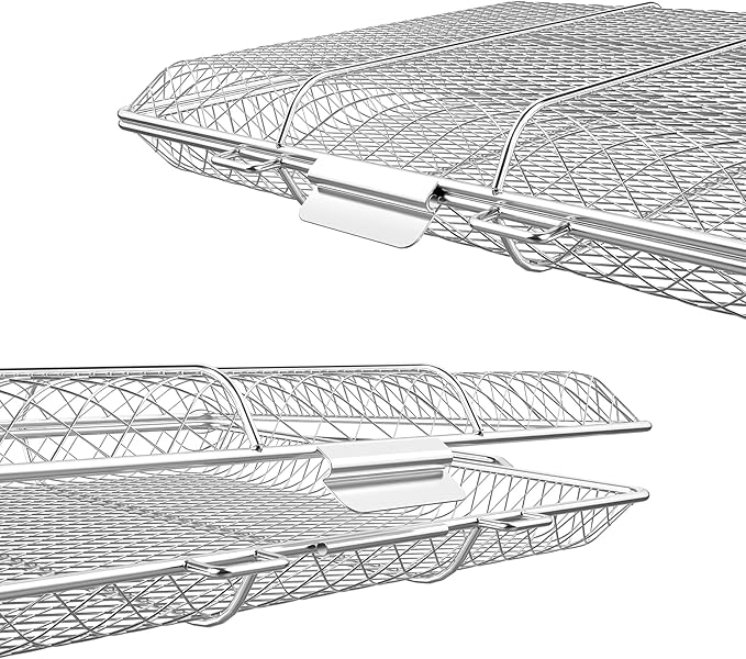 - PROFESSIONAL LOCKABLE GRATE - The fold up upper and lower nets with locking lid remains tight and never accidentally opens when you flip it or move it around. Our lightweight and portable grill basket is a great addition to your BBQ accessories. Great use for most gas/charcoal/smoker/porcelain grills.