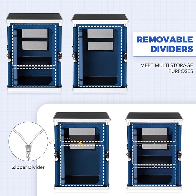 EAGLE PEAK Outdoor Folding Camping Table with Large 3-Tier Storage Organizer and Side Pockets, Easy Set Up Portable Aluminum Camping Kitchen, Blue