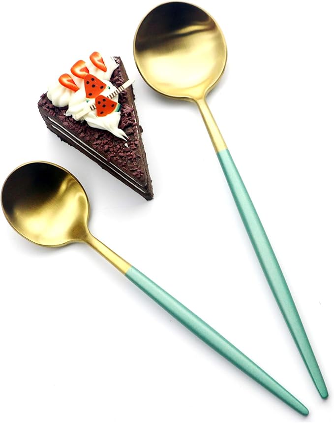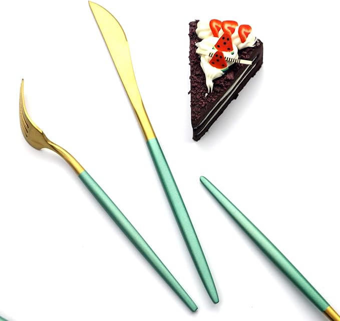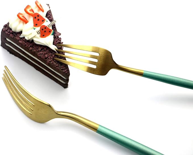 - ECO-FRIENDLY: Simple classic modern design would match well with your existing cutlery and elevate everyday meals into a fine dining experience,The handle is a eco-friendly color electroplating frosted appearance which is different from the common silver handle,special and comfortable,rust proof, high hardness.