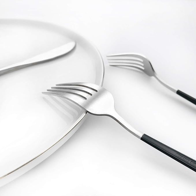 - ECO-FRIENDLY: Simple classic modern design would match well with your existing cutlery and elevate everyday meals into a fine dining experience,The handle is a eco-friendly color electroplating frosted appearance which is different from the common silver handle,special and comfortable,rust proof, high hardness.