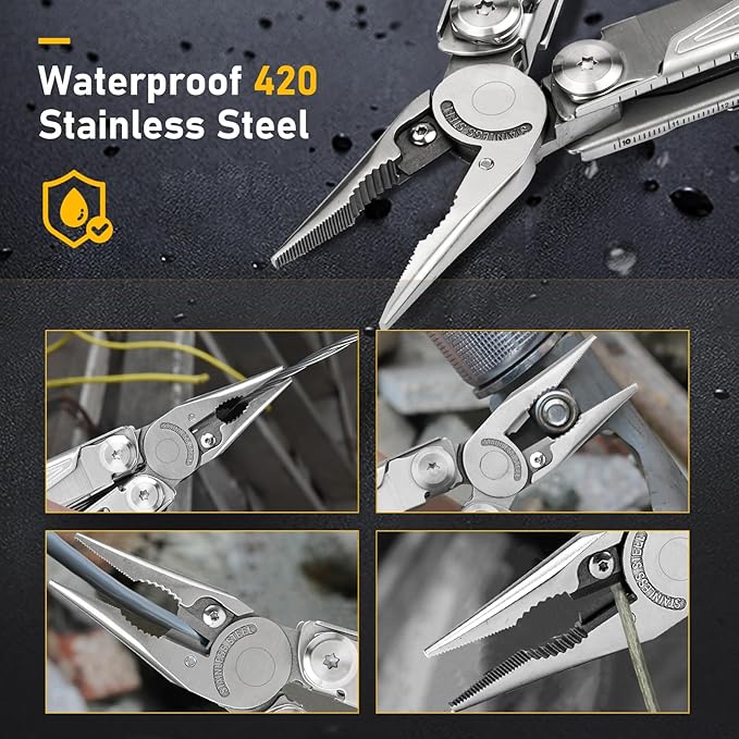 - Multi-scene diversity: The whole Body of the BIBURY Multi-Tool is made of 3Cr13 (high hardness stainless steel), which makes the pliers up for much heavy-duty and harsh environment. This portable multitool will not rust for a long time and can guarantee years of reliable performance. It can be used for home, camping, outdoor, etc