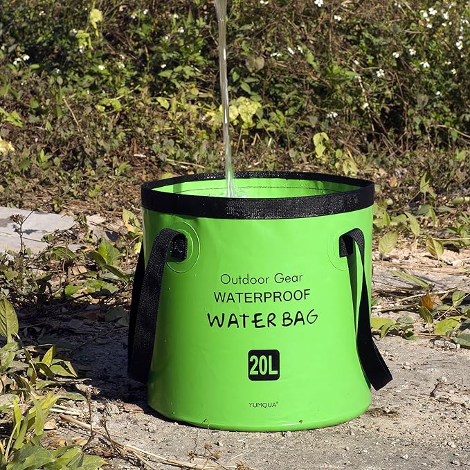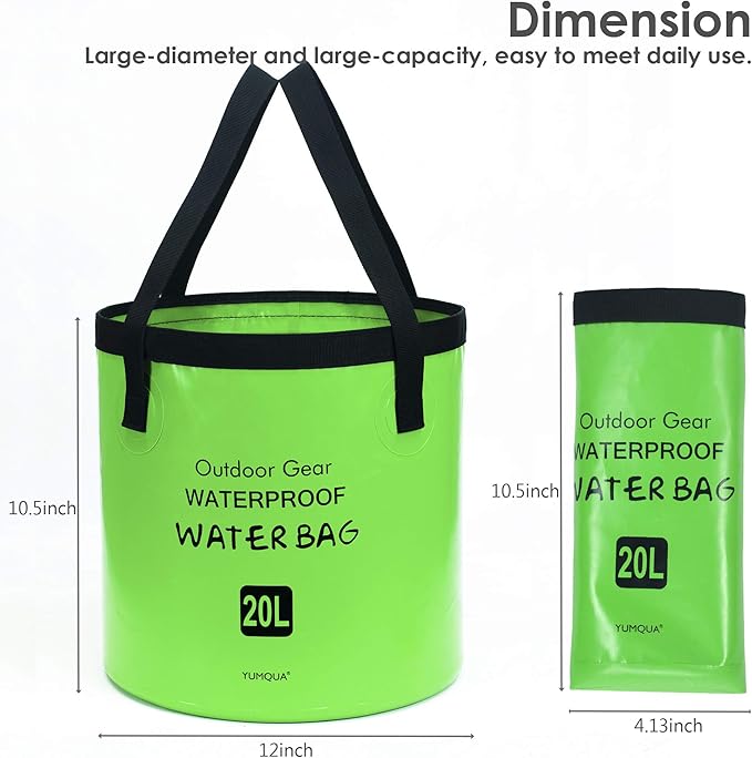 - 【Size】 YUMQUA collapsible bucket contains up to 20 liters (5 gallons), size: 26.67x30.48cm (10.5" x 12" ), Rolled up size: 10.5" x 4.13".