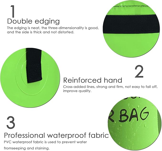 - 【Meterial】 Made of 500D PVC Tarpaulin, a durable material with double seamed seams. For your safety and environment, buckets use the environmentally friendly material, does not contain toxins such as BPA and Phthalates.