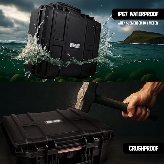 - ULTRA RUGGED - Built from high-strength, high-pressure polypropylene, the Durabox hard case is shockproof, crushproof, and impact-resistant. Its reinforced construction shields your gear from drops, pressure, and harsh handling—perfect for travel, job sites, or tactical environments.