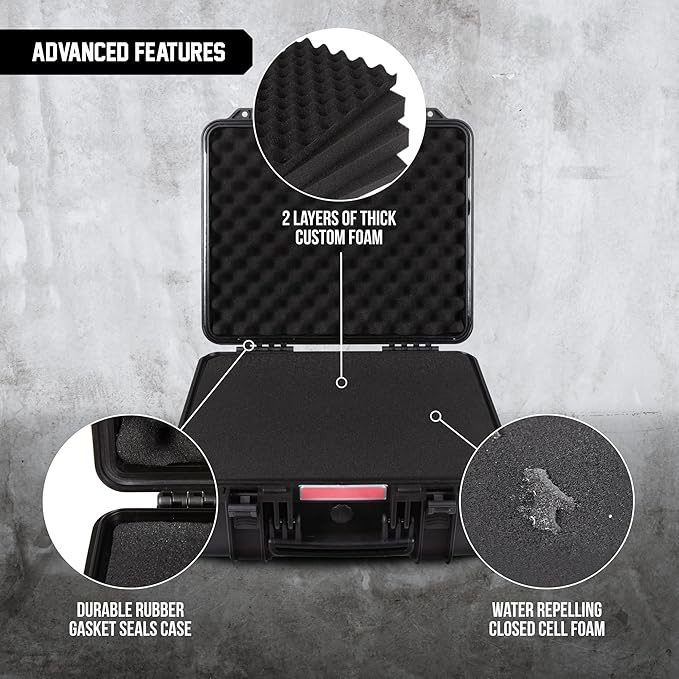- WEATHER RESISTANT - Engineered to keep your gear safe in harsh environments. IP-rated dust and splashproof with water submersion protection up to 1 meter. Closed-cell foam lining offers an extra barrier against moisture and impact ensuring your gear remains clean and dry.