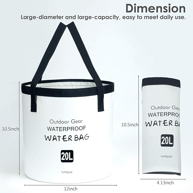 - 【Size】 YUMQUA collapsible bucket contains up to 20 liters (5 gallons), size: 26.67x30.48cm (10.5" x 12" ), Rolled up size: 10.5" x 4.13".