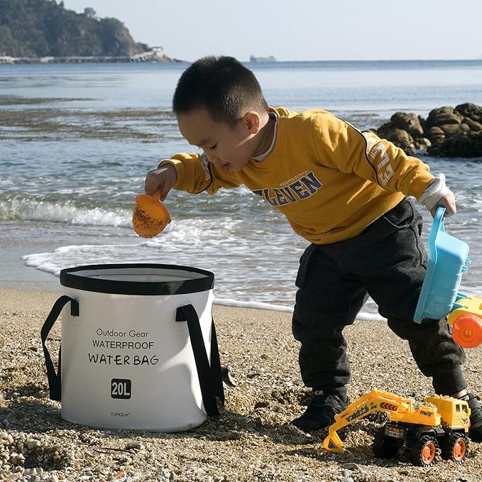 - 【Designed for Outdoor Enthusiasts 】 This collapsible bucket adpots the innovative D-ring design ensures easy pouring. Sturdy handles with soft, comfortable grips provide a secure hold and allow hassle-free hanging anywhere. Compact yet tough, it’s your go-to for portable water bucket.