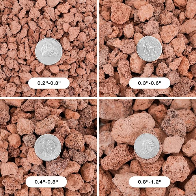- Pure Natural Lava Rocks: Lava stone comes in a variety of sizes from 0.3"to 0.6". Volcanic rock is truly natural, available in black and red. No fillers, chemicals or colors added