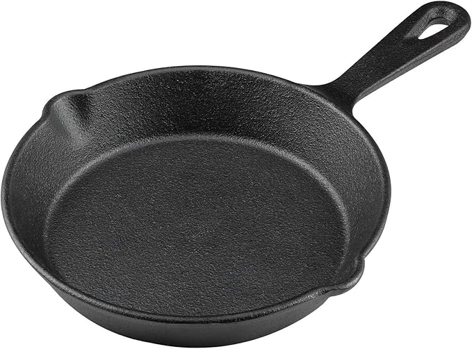 6 Inch Cast Iron Skillet, Frying Pan with Drip-Spouts, Pre-seasoned Oven Safe Cookware, Camping Indoor and Outdoor Cooking, Grill Safe, Restaurant Chef Quality