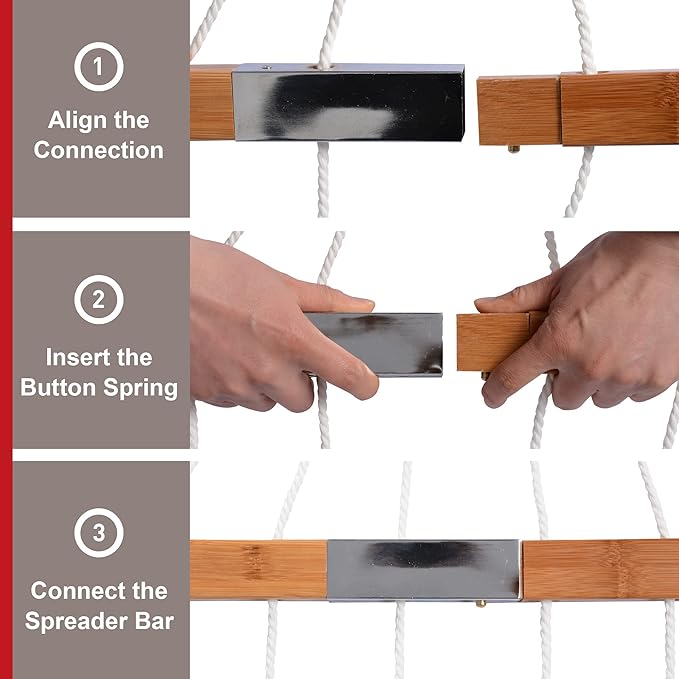 - Sturdy Spreader Bar: The spreader bars are environmentally friendly and strong. It could prolong the service life of your outside hammock, which make your hammock be a good companion in your life