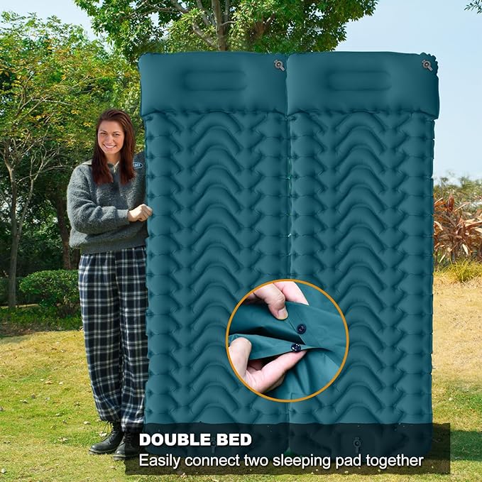 - 【Enjoy Double Bed & Quality Assurance】- Our Camping Pad is equipped with snap fasteners on the sides, with which you can connect two sleeping pad together easily, thus creating a double bed. Just try it, you will get the new joy of camping. This sleeping pad is 2021 the newest and unique style, we are confident that youe will love our backpacking sleeping mat. If you are unhappy with our sleeping pad, PLEASE reach out to us directly and we will do our best for you.