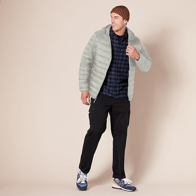 Amazon Essentials Men's Lightweight Water-Resistant Packable Hooded Puffer Jacket