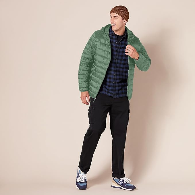 Amazon Essentials Men's Lightweight Water-Resistant Packable Hooded Puffer Jacket