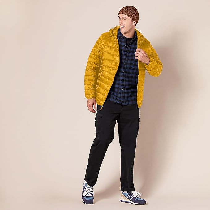 Amazon Essentials Men's Lightweight Water-Resistant Packable Hooded Puffer Jacket