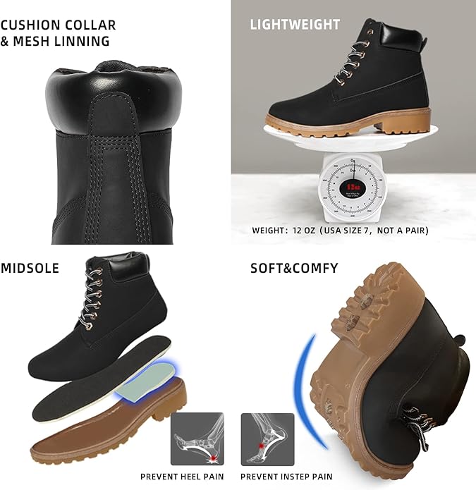 - 【Lightweight & Protective】: Our round hard toe boots are designed to be lightweight while offering protection for your feet. Weighing only 12 oz (per item), they are perfect for work, hiking, backpacking, construction and more.