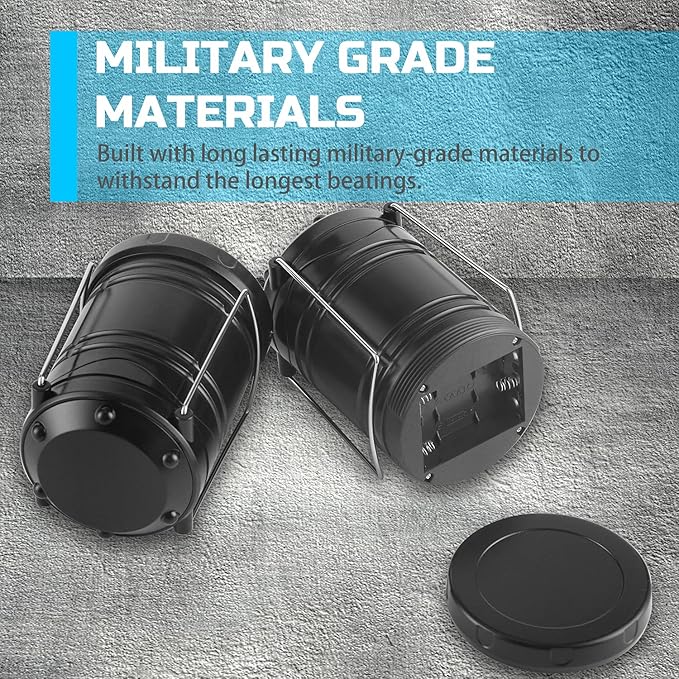 Lichamp 4 Pack LED Camping Lanterns, Collapsible Flameless Candles Tea Lights, Portable Battery Powered Camping Lights Emergency Supplies Kit, Black