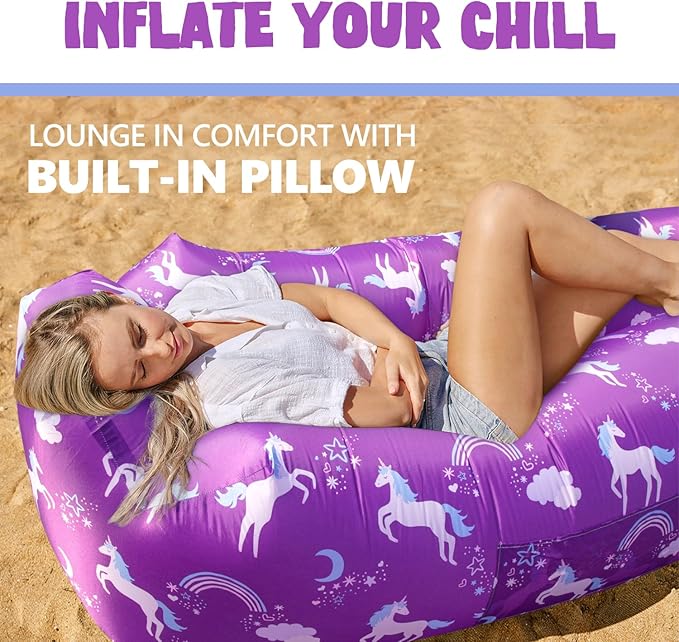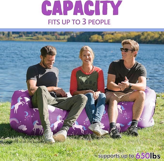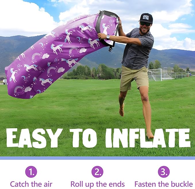 - Convenient Anytime, Anywhere: No pump required for our air lounger. Just a few scoops of air and this blow up couch is ready to hangout in. And it comes with opener and wind stake. Perfect for an afternoon of lounging, whether you're at the campsite, pre-game, BBQ or music festival.