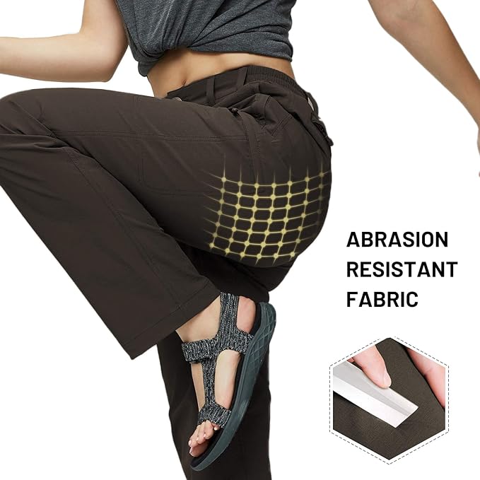 • These functional outdoor pants for women are designed especially for hiking, backpacking and mountain adventures. Crafted with the lightweight, quick dry, water-resistant, 4-way stretchy ripstop Nylon delivers breathable comfort and a full range of motion. Patent pending Miflex fabric developed by MIER, wicks moisture and dries quickly to keep you cool and fresh on the trail. Great for Spring/Summer/Autumn