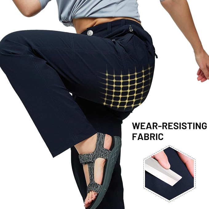 - These functional outdoor pants for women are designed especially for hiking, backpacking and mountain adventures. Crafted with the lightweight, quick dry, water-resistant, 4-way stretchy ripstop Nylon delivers breathable comfort and a full range of motion. Patent pending Miflex fabric developed by MIER, wicks moisture and dries quickly to keep you cool and fresh on the trail. Great for Spring/Summer/Autumn