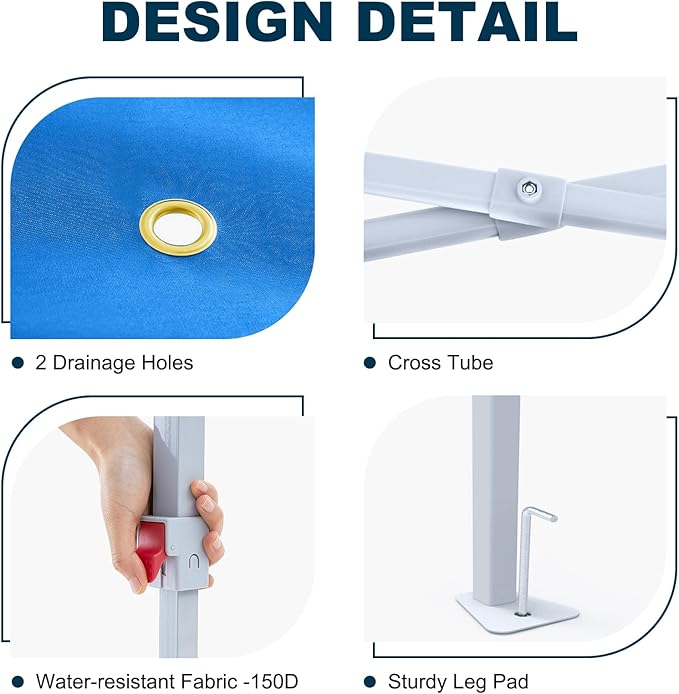 - ✅【Rational Design】: Double-tiered top provides better air circulation and helps to improve stability in windy conditions by allowing the wind to pass through. Drain holes on each edge of the canopy prevent water from accumulating.