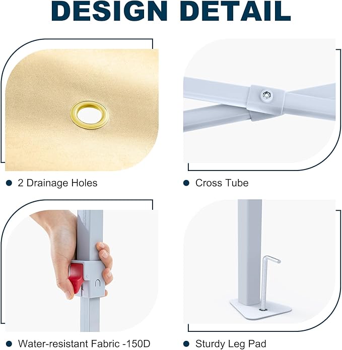 - ✅【Rational Design】: Double-tiered top provides better air circulation and helps to improve stability in windy conditions by allowing the wind to pass through. Drain holes on each edge of the canopy prevent water from accumulating.