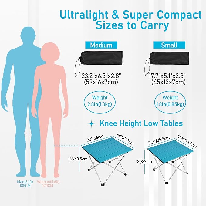 Tesouro Portable Camping Table,Folding Side Table Aluminum Top for Outdoor Cooking, Hiking, Travel, Picnic (Blue-Medium)