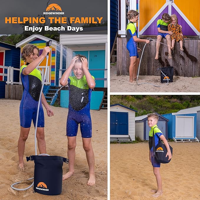 - BEACH DAY MADE EASY: Pack our portable shower with you on those special beach days. Once the fun is over, simply fill the 10L Dry Bag with fresh water and wash away all the sand from the day, never bringing it back into your car or the house. Better yet, use our camp shower, to rinse all the salt off at the end of the day, to leave you feeling clean and refreshed.
