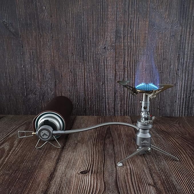 Butane Adapter Stand Type Remote Stove for Camping Backpacking Butane Gas Fuel Canister w/Hose Z23-VC (Silver)