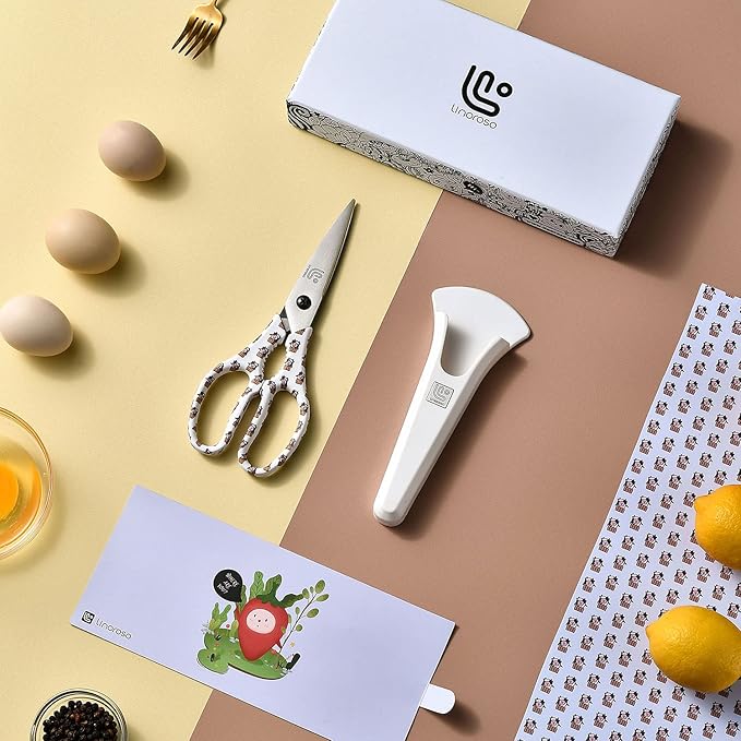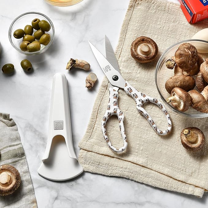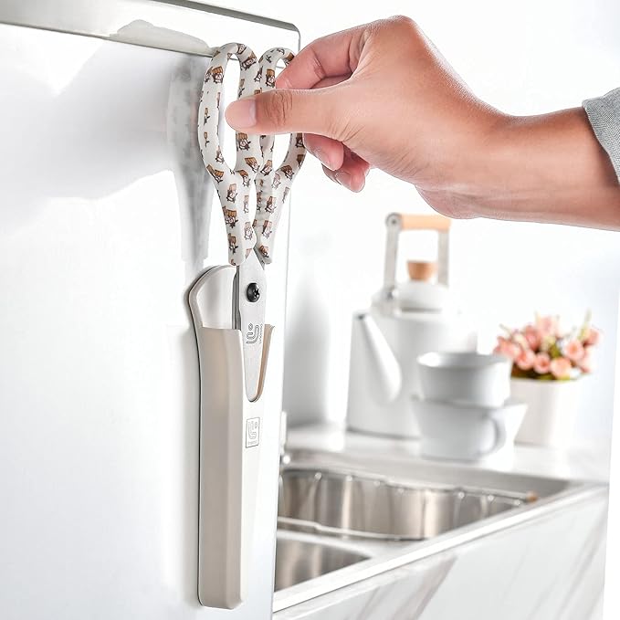 - Kitchen Scissors All Purose: Magnetic food scissors adapt to all kinds of kitchen works, Sharp and precise cutting for any foods, great as meat scissors; herb scissors; food scissors; pizza scissors; poultry shears and salad scissors. Of course, the blades are very easy to clean, safer and more hygienic and healthy. This kitchen scissors heavy duty will help you stay away from any kitchen mess and be your right-hand man. WARM TIP: Our white series scissors are non-detachable one-piece scissors