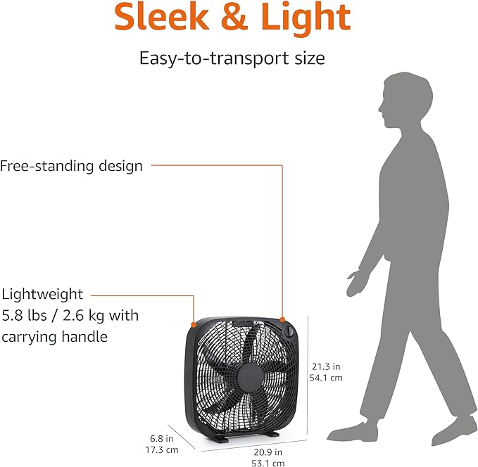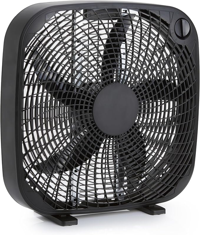Amazon Basics 3 Speed Box Fan, Indoor Electric Fan for Home Cooling, 5 Blades, Lightweight Design, 67 Watts, 20-Inch, Black, 6.8"D x 20.86"W x 21.33"H