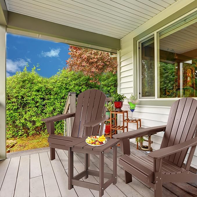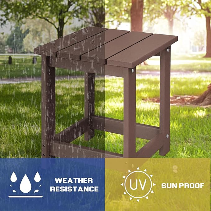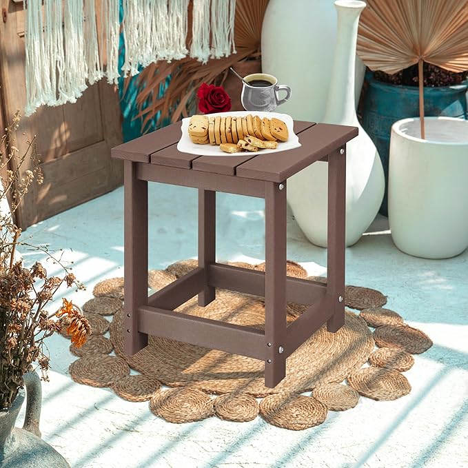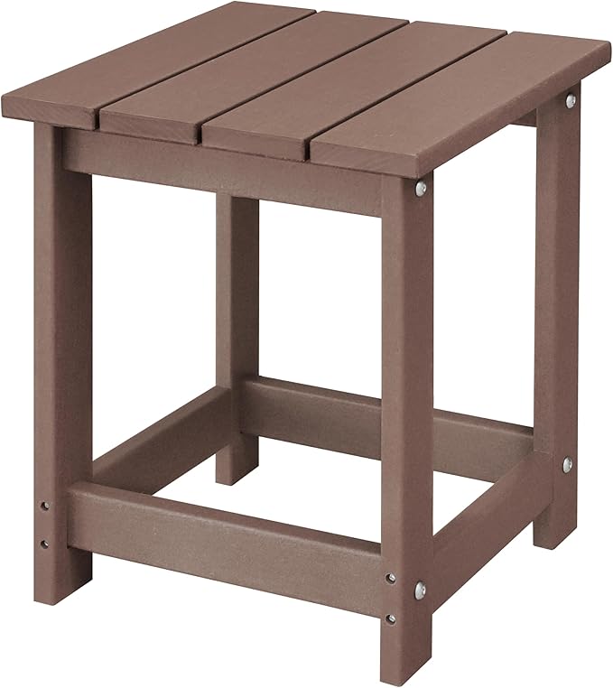 LZRS Adirondack Square Outdoor Side Table for Patio, Pool Composite Patio Table,HDPE End Tables for Backyard,Pool, Indoor Companion, Easy Maintenance & Weather Resistant(Brown)