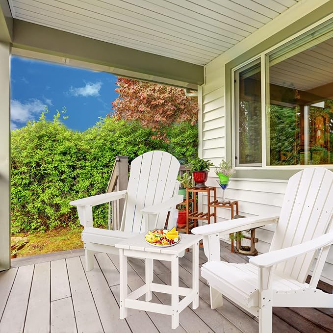 LZRS Adirondack Square Outdoor Side Table for Patio, Pool Composite Patio Table,HDPE End Tables for Backyard,Pool, Indoor Companion, Easy Maintenance & Weather Resistant(White)
