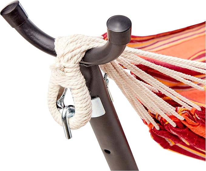 Amazon Basics 2 Person Heavy Duty Double Hammock with 9-Foot Space Saving Steel Stand and Carrying Case Outdoor, 450 lb Capacity, Sunset Orange, Stripe, 110 x 47 x 43 Inches