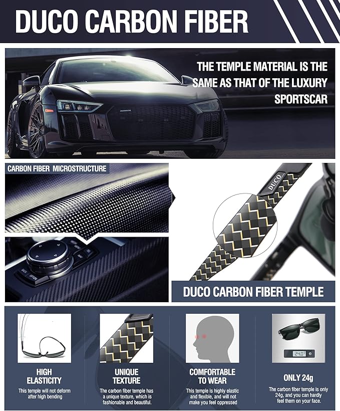 DUCO Mens Sunglasses Polarized Rectangle Sunglass for Men Lightweight Carbon Fiber UV400 Protection 8206