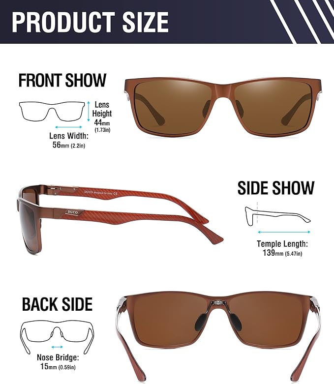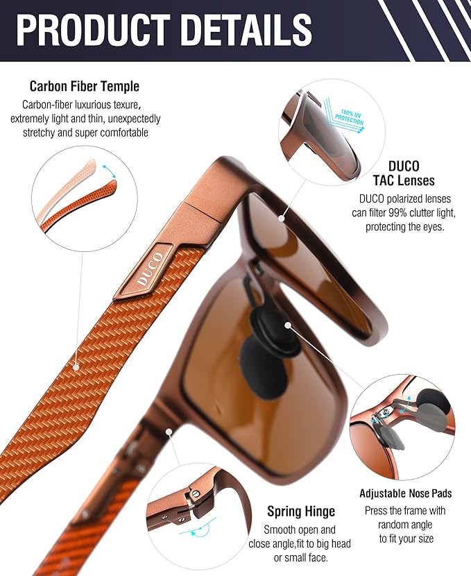 - 【UV HD Polarized Lenses】DUCO High Definition TAC Lenses Are Designed To Filter Out 99% Of Reflected Glare Minus The Haze And Distortion That Typically Comes With Conventionally. They Are Extremely Impact-Resistant, Scratch-Resistant, Lightweight And Durable.They Block 100% Of Harmful UVA, UVB & UVC Rays Up To 400nm, Restore True Color, Enhance Contrast, Make Your Eyes More Comfortable.