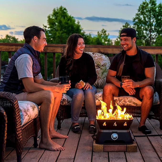 - SMOKELESS FIRE PIT – Say goodbye to messy dirty ash and bothersome smoke. With the firecube you can enjoy a clean realistic campfire, all powered through propane. Our all-weather mini propane fire pit with a total output of 58,000 BTU/HR delivers a clean and smokeless flame with a cozy warmth