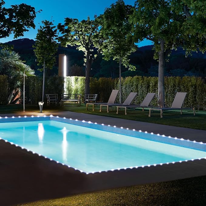 - [SAFE IP65 WATERPROOF &PVC HOSE PROTECTION] What's more surprised is that the 200LED low-voltage solar rope lights has passed IP65,it is not only waterproof, also frost-proof and sun-proof.It is more durable than other ordinary solar string lights, it can meet your different indoor outdoor decor throughout the year.Decorating the edge of your swimming pool with the solar rope lights can make your swimming pool radiate charming and romantic brilliance, which will add a lot of fun for you